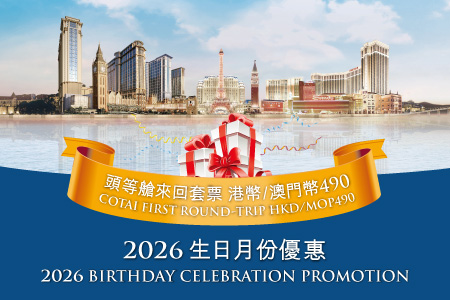 6. The words “Birthday Offer ” will be printed on the ferry tickets. Eligible Passengers must present identification document for verification at the gate before boarding (additional guests are not required to verify eligibility). If any deviation is found, Cotai Ferry Company Limited (“CFCL”) reserves the right to refuse guests onboard.