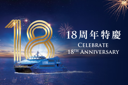During the Selling Period, passengers who purchase one (1) adult city route (Hong Kong Macau Ferry Terminal to/from Macau Taipa Ferry Terminal) regular-priced ferry ticket (Cotai First) with sailing schedule within the Promotion Period at Cotai Water Jet official website or mobile APP at “Special Discount Zone” section, are entitled to enjoy accompany in two special price of HKD$18 to purchase one (1) adult ferry ticket of the same sailing schedule and class (“Offer”)